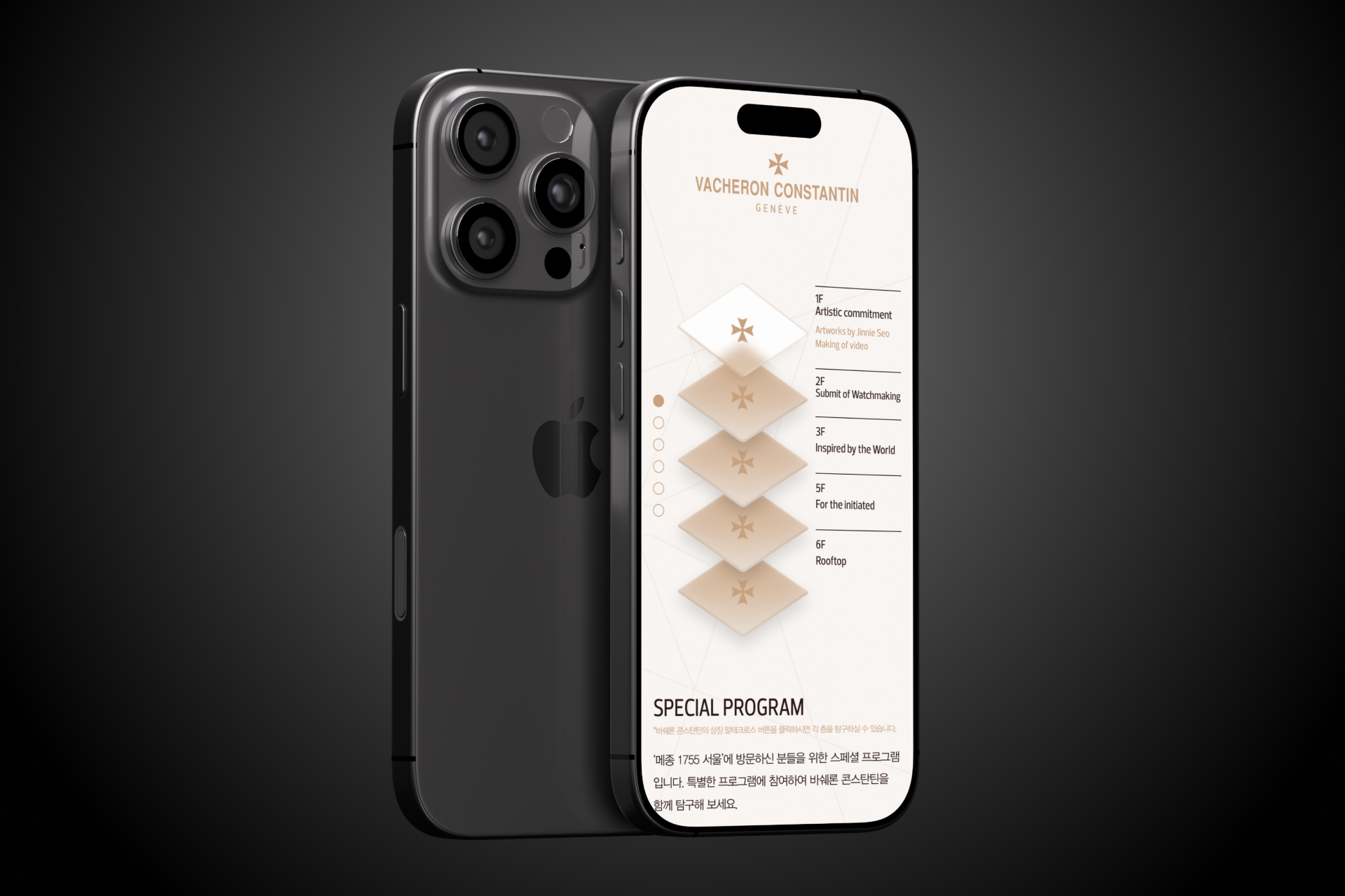 To celebrate the opening of ‘Maison 1755 Seoul’ and its VIP event, Another Sunday created a microsite that served as a digital alternative to traditional leaflets. Through this site, visitors could effectively explore the content and layout of each floor, and also access reservations and notifications for a special heritage lecture by Style & Heritage Director Christian Selmoni.