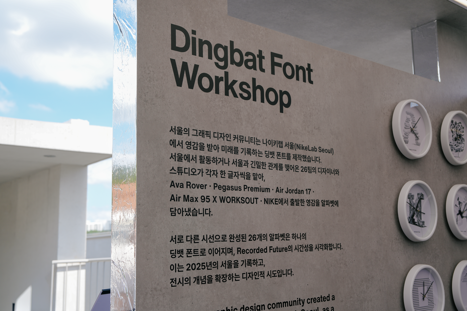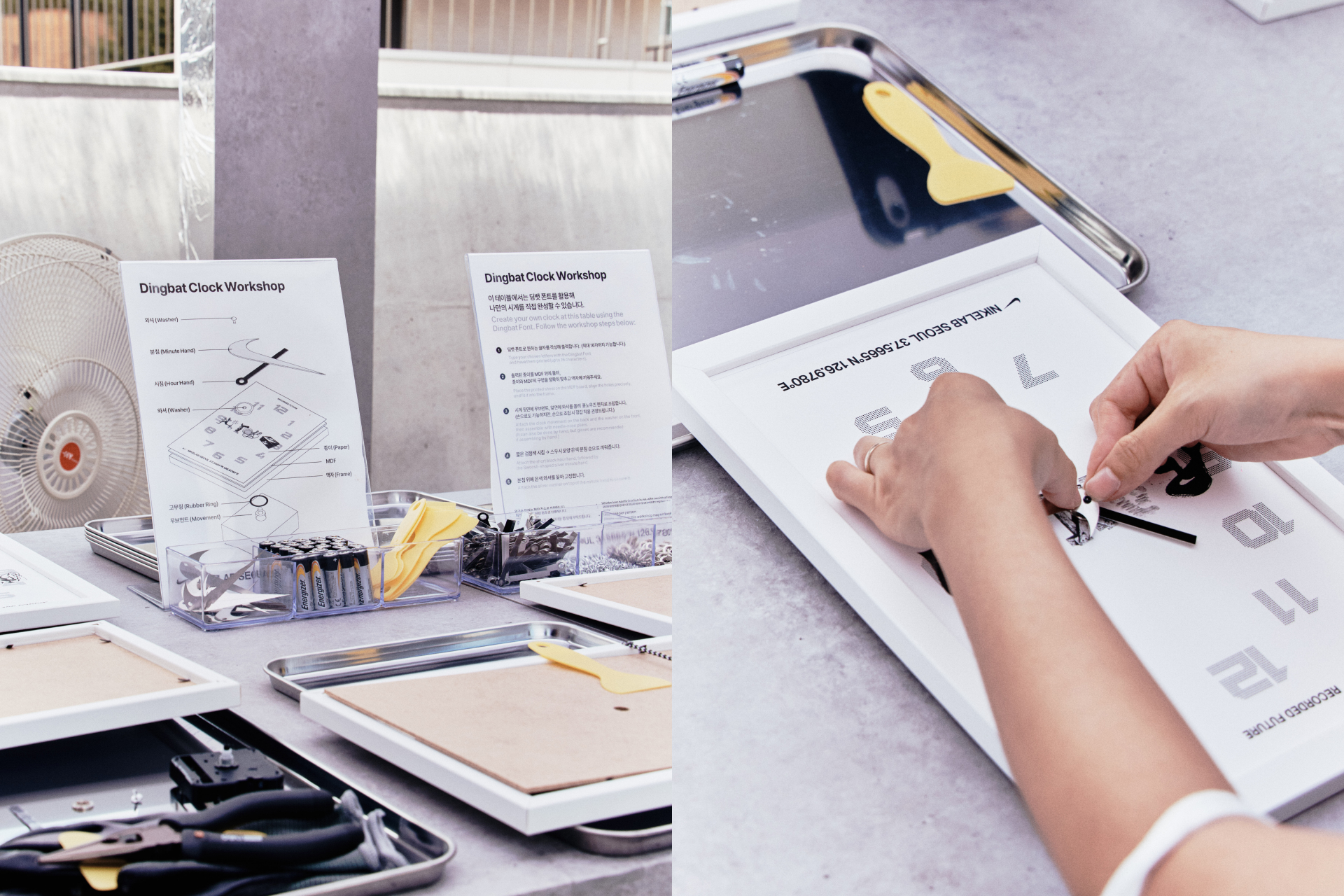 AnotherSunday (@anothersun.day) participated in the exhibition as an artist and designed the letter "V" as part of a dingbat font. The dingbat font, created together with 25 designers, was presented in the Experience Zone where it could be printed as postcards, and in the Workshop Zone where visitors could engage with it through a watch-making program. In addition, AnotherSunday also developed programs for both the Experience Zone and Workshop Zone to enhance the visitor experience.