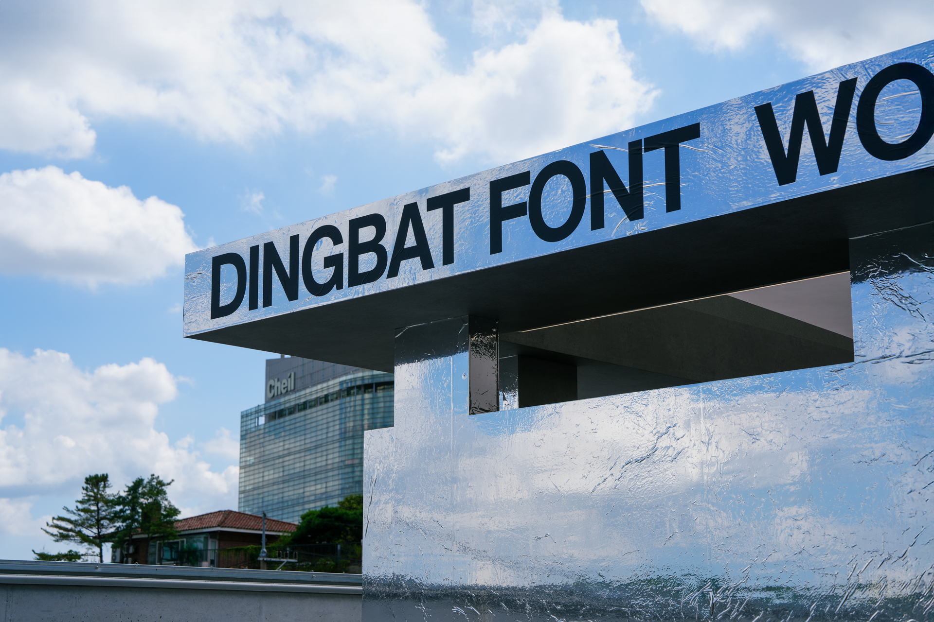 어나더선데이(@anothersun.day)는 본 전시에 아티스트로 참여하여 알파벳 'V'를 딩뱃 폰트로 디자인했습니다. 어나더선데이와 25명의 디자이너가 함께 제작한 딩뱃 폰트는 체험존에서는 엽서로 출력되고, 워크숍존에서는 시계 제작 프로그램을 통해 관람객이 직접 경험할 수 있습니다. 더불어 어나더선데이는 체험존과 워크숍존을 위한 프로그램 개발도 함께 개발했습니다.